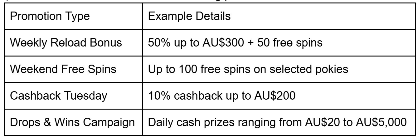 These rolling promotions introduce variety into the gaming experience, adding small boosts to players’ balances and giving returning members something fresh to explore each week.